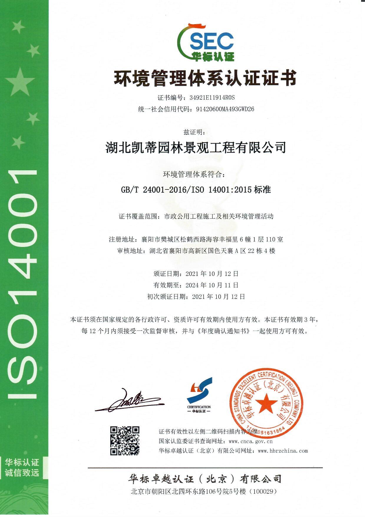 ISO14001環境管理體系認證證書